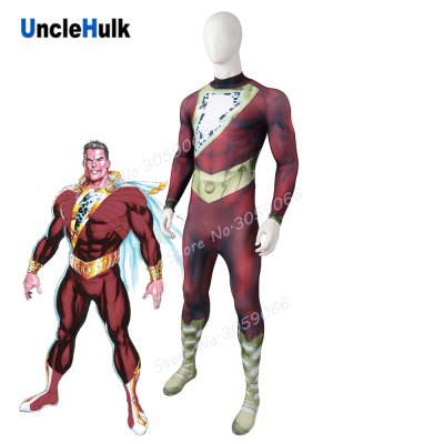 Captain Marvel Shazam Printted Spandex Zentai Costume 2019 movie Shazam - style 2 | UncleHulk