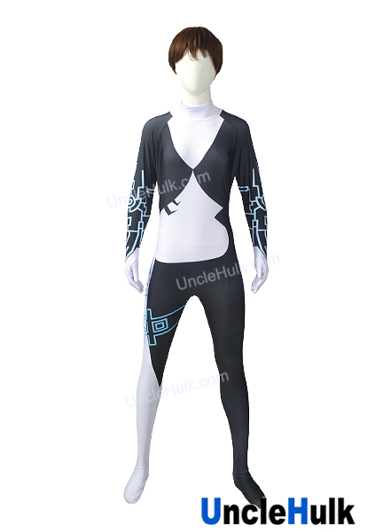 Imp Midna Costume |The Legend of Zelda - Twilight Princess White and Black Spandex Zentai Suit with Blue Paint Pattern