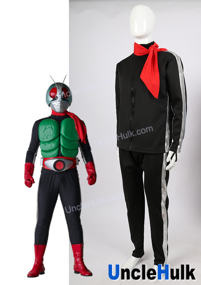 Masked Rider No.2 Cosplay Costume Four-piece - tops trousers gloves scarf - Silver Side Line | UncleHulk