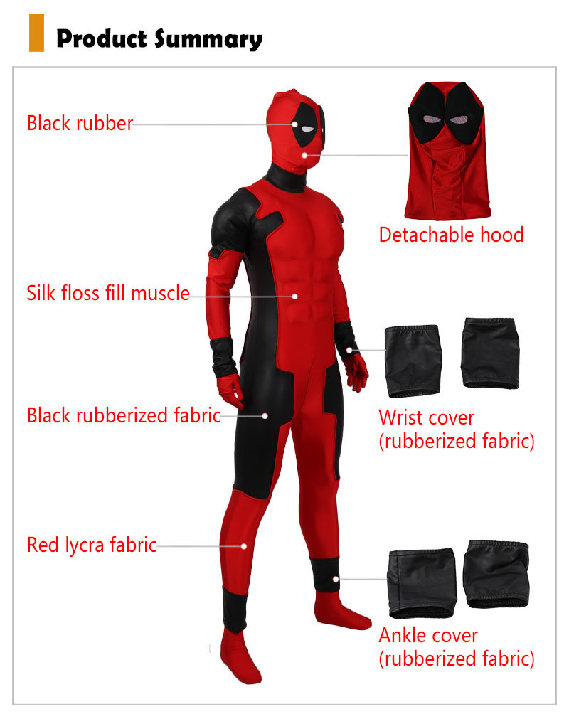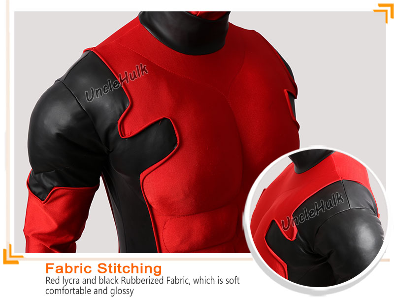 Red Deadpool with Silk Floss Muscle and Rubber Lenses Spandex Zentai Bodysuit | UncleHulk
